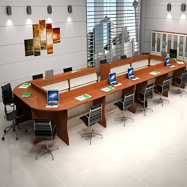 در فضای اداری سازمانها، شرکتها و… میز کنفرانس، مانند سایر اجزاء مبلمان اداری بسیار حائز اهمیت است. موفقیت و پیشبرد اهداف یک مجموعه کاری، در راستای مشورت و هم فکری پرسنل آن صورت میگیرد. اتاق کنفرانس و مذاکرات، از مهمترین بخشهای هر اداره، سازمان و یا شرکت به شمار میآید. هرچه طراحی دکوراسیون اتاق کنفرانس خاصتر و شکیلتر باشد، موجب راحتی و عملکرد بهتر کارکنان در جلسات اداری میشود. بنابراین گیرایی فضای اتاق مذاکرات، بر موفقیت نهایی مجموعه اداری شما تاثیری مستقیم دارد. این میز در ابعاد و مدلهای متنوعی طراحی و تولید میشود.